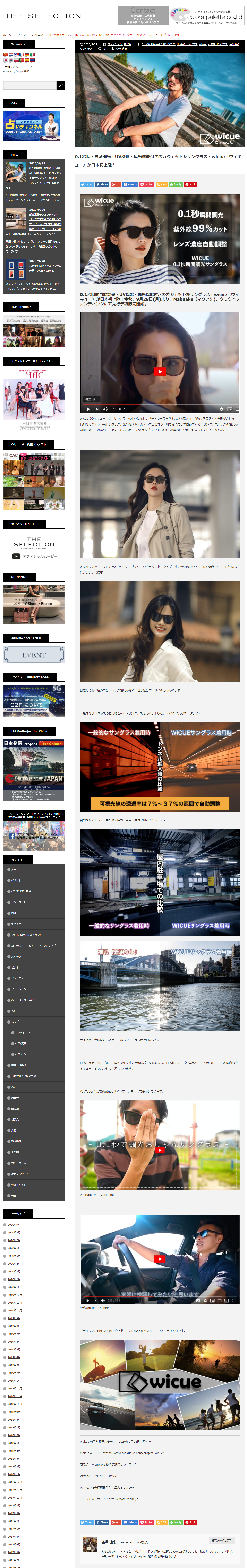 THE SELECTION「0.1秒瞬間自動調光・UV機能・偏光機能付きのガジェット系サングラス・wicue(ウィキュー)が日本初上陸!」掲載2020.09.29メディア掲載 URLはこちら→https://the-selection.jp/magazine/wicue-dimmable-sunglasses/ Tweet Share Pin it アスキーさんにWICUE 0.1秒瞬間調光サングラス取材いただきました。前の記事 目からくる光老化を防ぎましょう 目から日焼け編動画UP次の記事