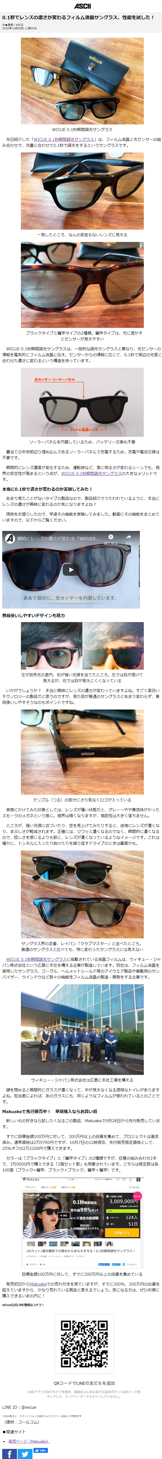 【ASCII掲載】0.1秒でレンズの濃さが変わるフィルム液晶サングラス、性能を試した!2020.10.08メディア掲載文●貝塚/ASCII URLはこちら→https://ascii.jp/elem/000/004/027/4027776/ Tweet Share Pin it 『Ameba』WICUE DIRECTオフィシャルブログ開始のお知らせ前の記事 Sharee (シェアリー)投稿開始のお知らせ次の記事